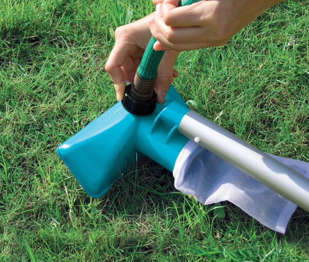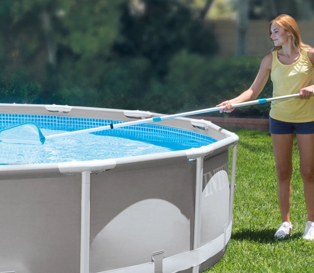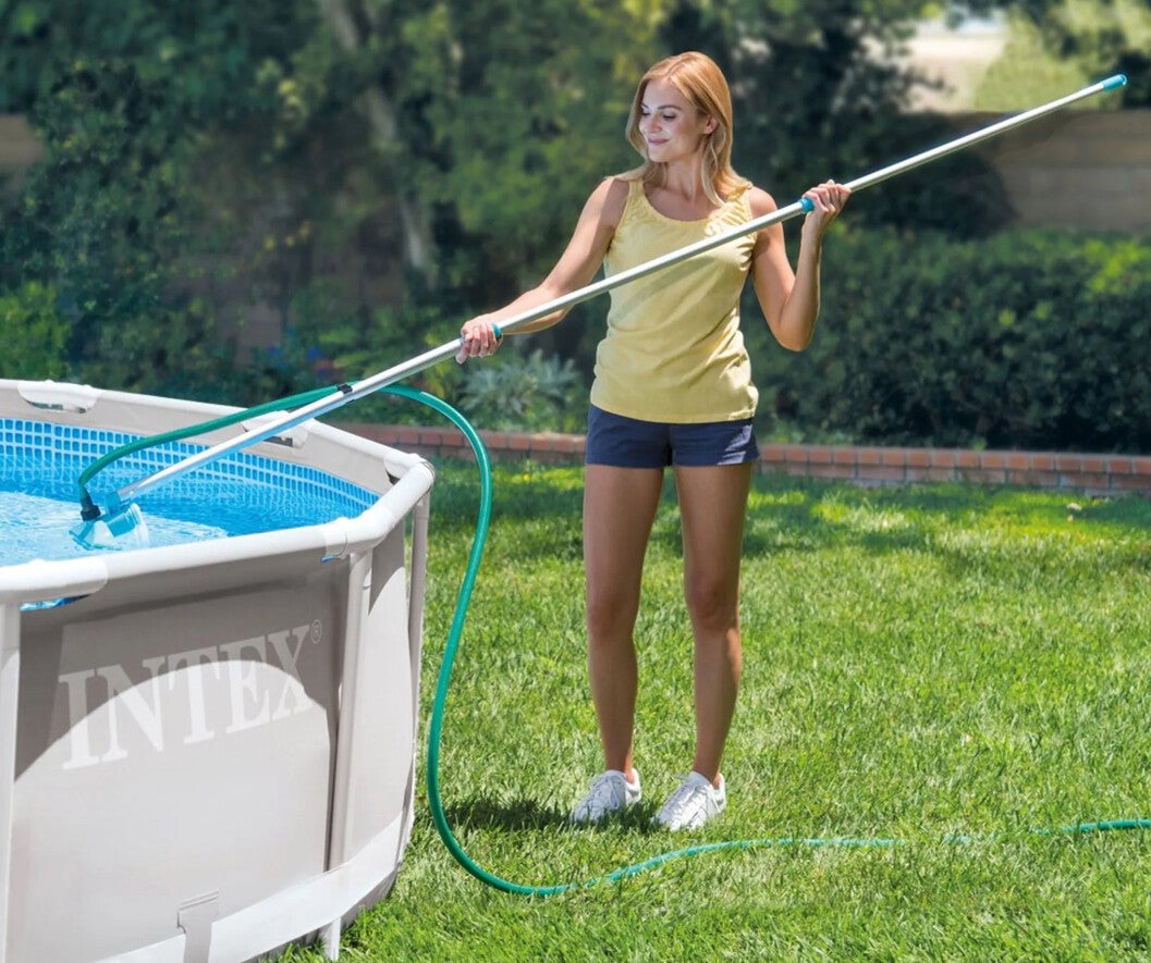 Adatto a piscine fuori terra con un diametro fino a 488 cm, questo kit di pulizia è composto da un robusto manico telescopico da 239 cm su cui possono essere montati sia il retino per pulire la superficie dell’acqua sia una speciale testa pulitrice, grazie alla quale è possibile rimuovere i detriti che si sono depositati sul fondo e/o sulle pareti della piscina.